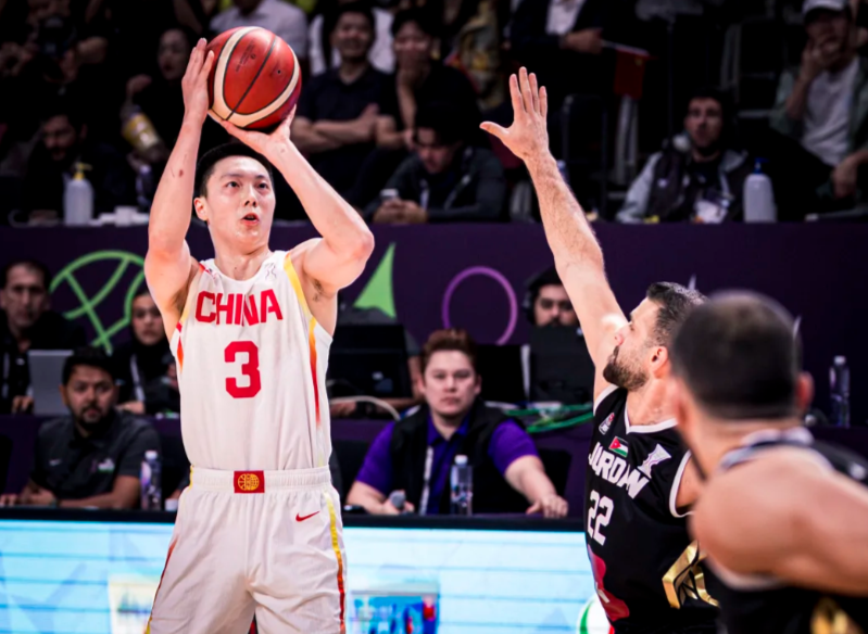 这一节,约旦队几次掀起反扑,胡明轩数次站出来救火。不到4分钟时,还是小胡单手传球助攻赵睿投中超远三分,为中国男篮领先11分。打到第三节还剩6分35秒,胡明轩更是上演转身后的长传助攻王俊杰完成无人防守的快下上篮。
